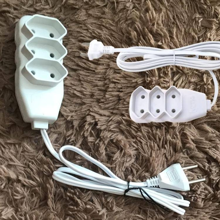 Extensao 3 Tomadas Slim Tripolar Branco 5,0M